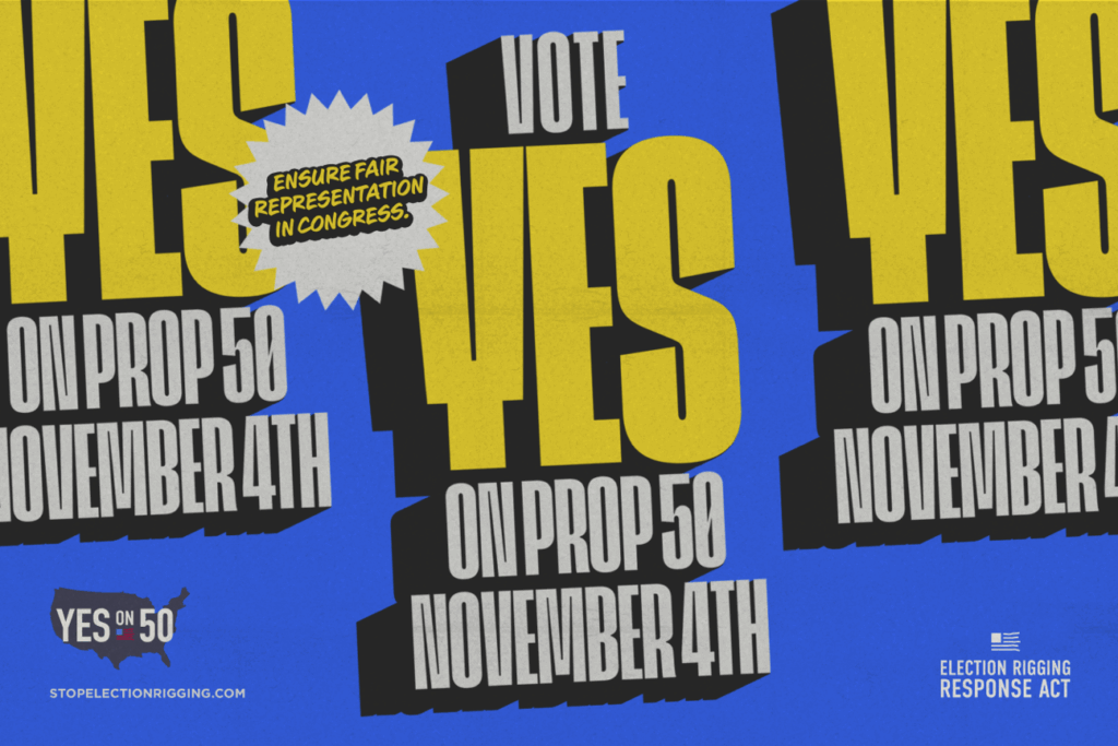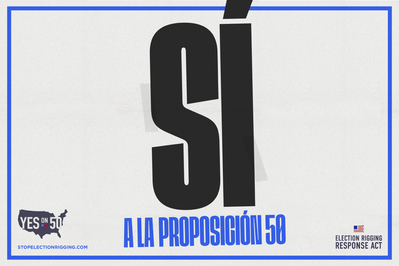 - Levels the playing fieldProp 50 makes sure the 2026 mid-term elections are conducted on a level playing field without an unfair advantage for Republicans.